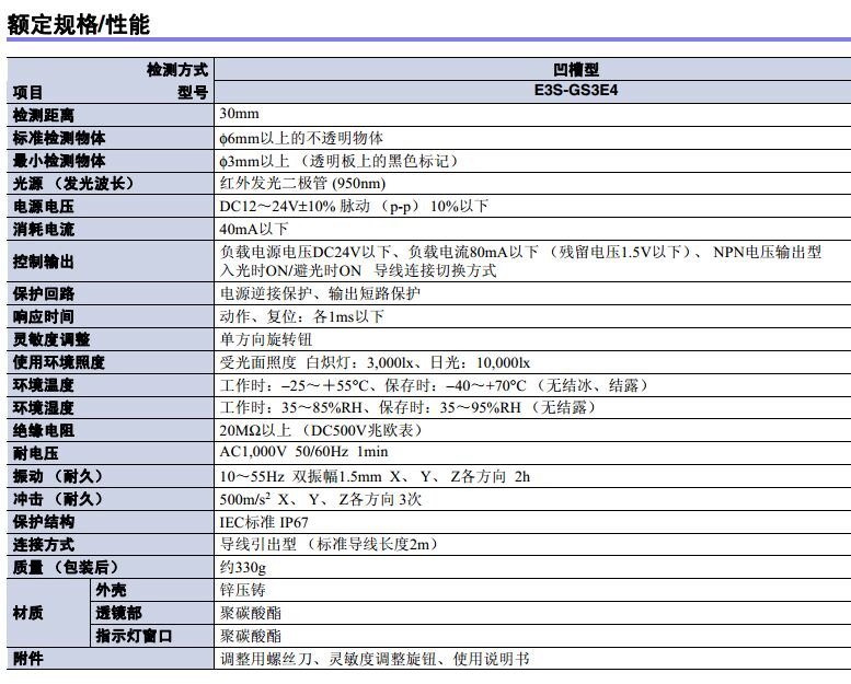歐姆龍傳感器E3S-GS3E4系列|歐姆龍光電開關(guān)傳感器E3S-GS3E4系列