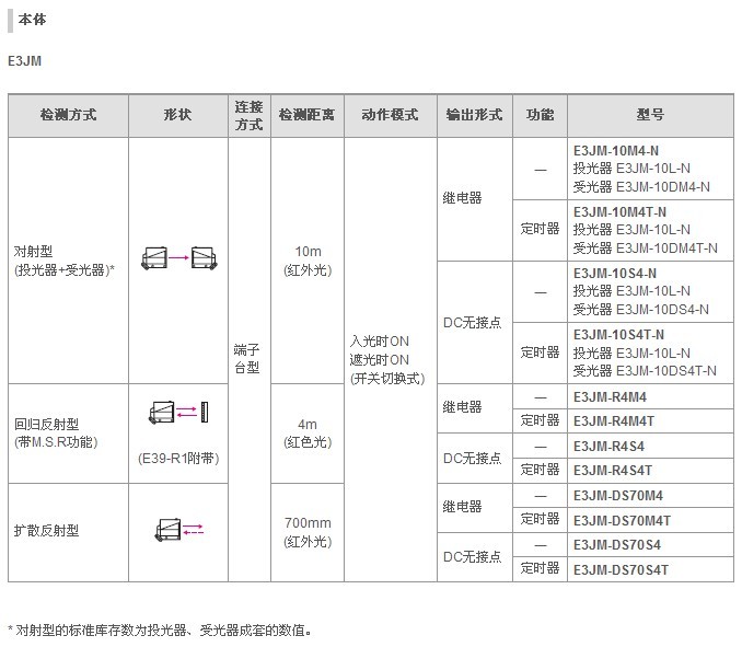 *1. 對射型的標(biāo)準(zhǔn)庫存數(shù)為投光器、受光器成套的數(shù)值。