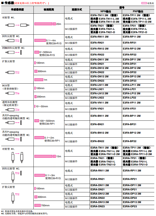 歐姆龍光電傳感器E3FA/RA系列(光電開關(guān))