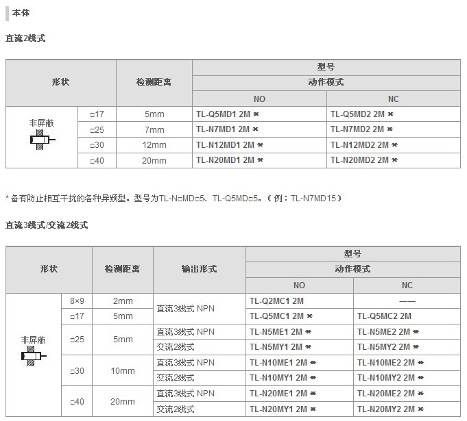 TL-N/Q/G 系列接近開關(guān)(接近傳感器)