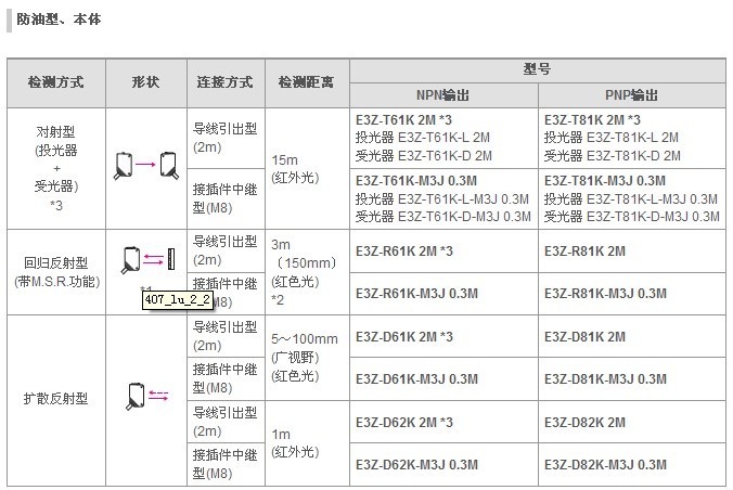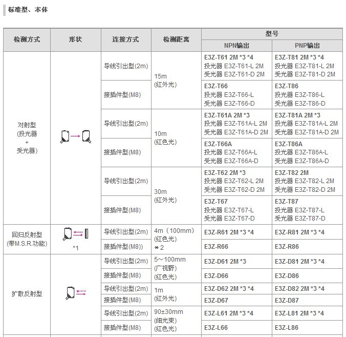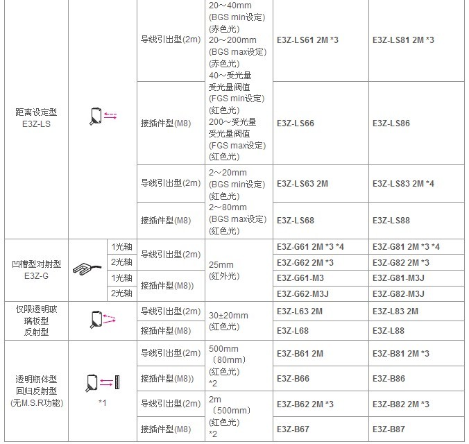 歐姆龍光電傳感器(光電開(kāi)關(guān))E3Z系列產(chǎn)品參數(shù):