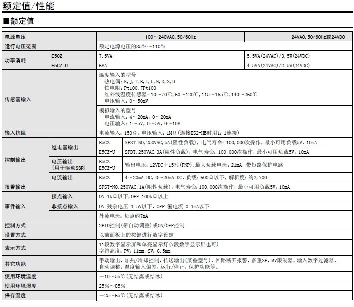 歐姆龍溫控器E5CZ系列產(chǎn)品參數(shù):